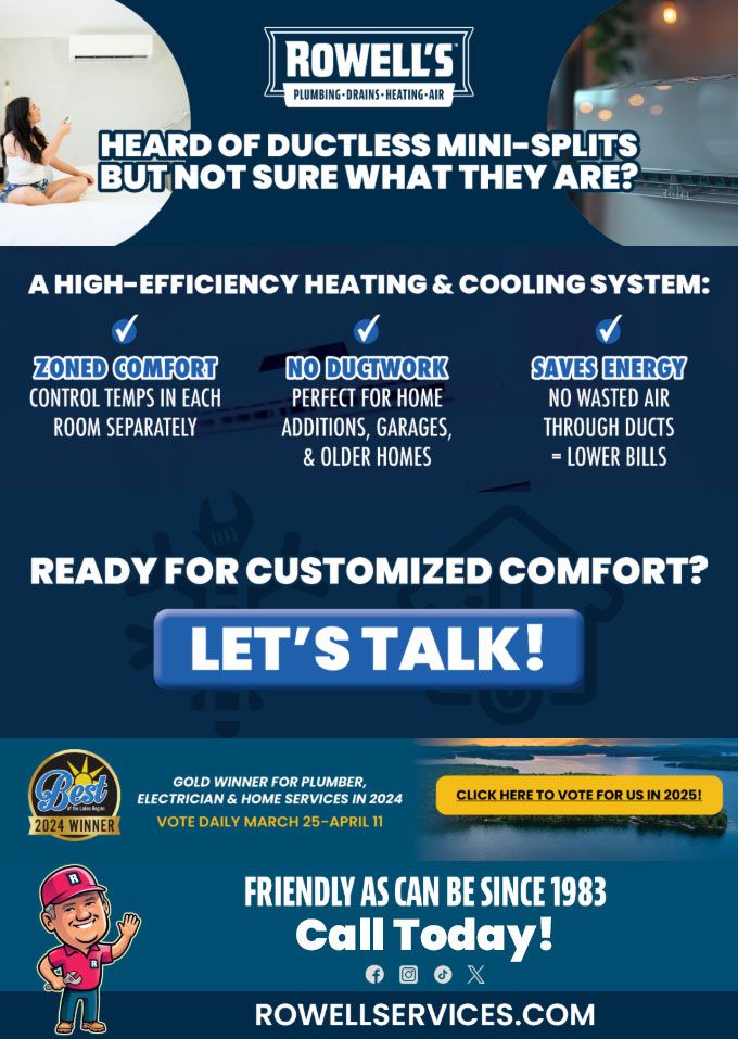"Friendly As Can Be Since 1983!" When you need help with your plumbing, drains, heating, cooling or electrical in Laconia, you can always rely on Rowell's Services! Call us now or book online!